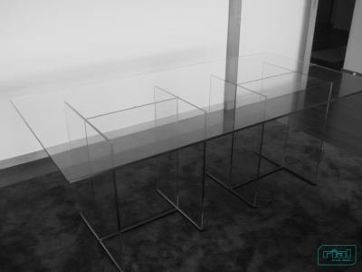 Mesa de jantar totalmente produzida em vidro. A leveza e a pureza na sua plenitude. O essencial é visível aos seus olhos.