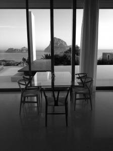 Mesa de jantar totalmente produzida em vidro.