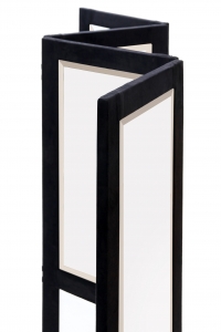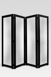 Biombo de 4 partes dupla face em espelho com bisel. Estrutura forrada a tecido tipo alcantara.