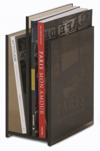 Porta-revistas em vidro bronze de 10mm de espessura com aresta/chanfre, colagem UV.