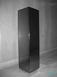 Coluna em espelho cinza com retro-iluminação no tampo.